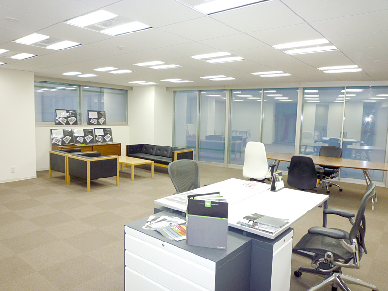 フロア内に3ヵ所のオフィスファニチャーがディスプレイされています。